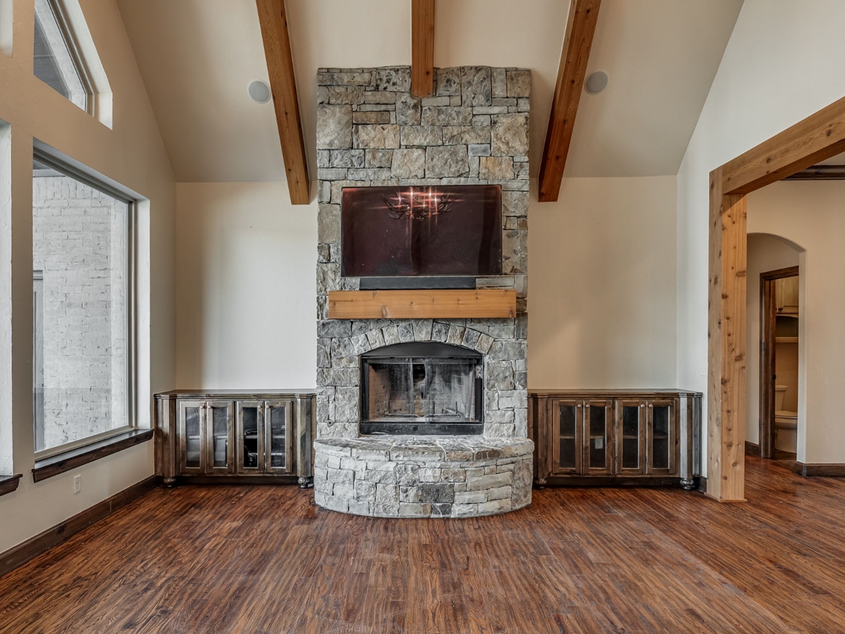 Now available for lease in the sought-after Twin Bridges community, 701 Tacoma Bridge Court offers custom craftsmanship and inviting, rustic character on a quiet cul-de-sac with over half an acre of space. Inside, the home blends an open layout with comfortable, defined living areas. Hand-scraped wood floors run through the main living spaces and dining area, where a striking stone accent wall and cedar beam details add warmth and texture. The living room features vaulted ceilings with exposed wood beams, a floor-to-ceiling stone fireplace, and built-in shelving. Large windows across the back of the home provide natural light and views of the covered patio. The outdoor living area is designed for relaxing and entertaining, complete with a second fireplace, built-in grill, and space for outdoor dining. A separate concrete patio extends into the .57-acre yard, offering even more room to unwind or host guests. The kitchen showcases natural stone surfaces, warm finishes, a double oven, center prep island, and generous bar seating in addition to a breakfast nook. The primary suite is located on the main level along with a private office, half bath, and three additional bedrooms connected by a Jack-and-Jill full bath. Upstairs, you’ll find a newly added full bathroom and a versatile bonus space that can function as a fifth bedroom, media room, playroom, or hobby space. Recent updates include a refreshed primary bathroom, a newly constructed upstairs bath, and fresh paint throughout much of the home. Residents of Twin Bridges enjoy access to a neighborhood pool, clubhouse, walking trails, scenic ponds, and planned community events throughout the year. Contact us today to schedule a private tour of this exceptional lease opportunity.