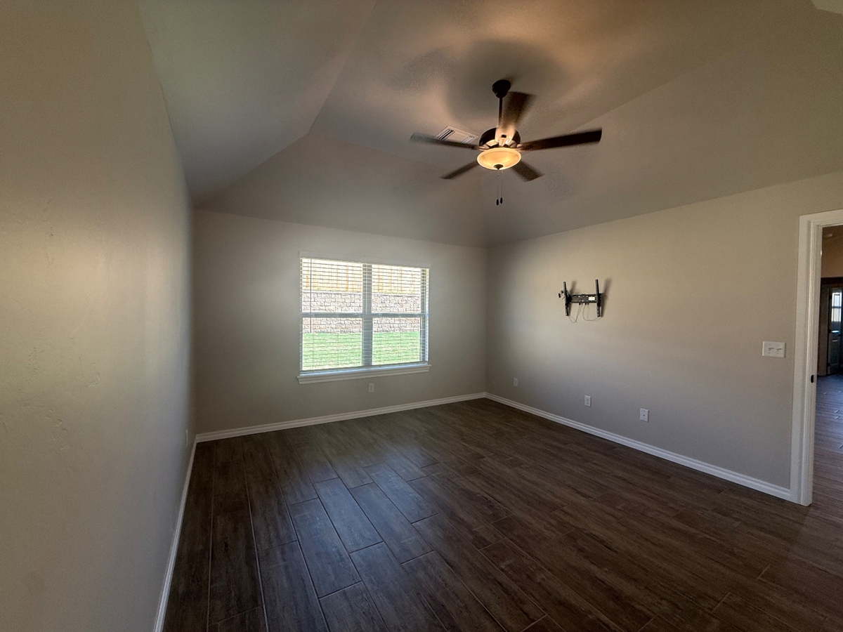 This brand new home features 3 bedrooms, 2 bathrooms, covered patio with TV wall mount and fireplace. The master bedroom and living room comes with TV wall mounts too. The great room welcomes high ceilings a beautiful fireplace surrounded by stacked stone detail, large windows, wood-look tile flooring, ceiling fan and CAT6 wiring. Well crafted cabinets thru out this beautiful new home. 3 CM countertops, SS appliances and a walk-in pantry. The attached spa-like primary bath host a free standing bath tub, European walk-in closet. Secondary bedrooms are spacious and and are on the opposite end of the house. Amenities include pool, club house with workout room, basketball court, splash pad, walking trails, pond, and pickle ball.