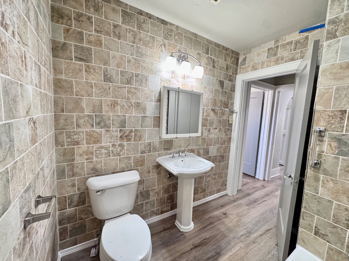 This wonderful tudor revival/deco duplex is a green property due to the insulation in the walls that helps lower bills and outside noise. With lots of space and charm, it has a brick fireplace in the living room, large dining, nice size bedroom, a covered porch and garage.