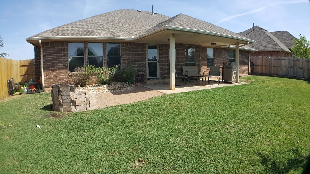 Beautiful 3 bed 2 bath home in Bristol Park! Gorgeous stained concrete floors, large kitchen with granite counter tops, under mount sink, and ss appliances (including refrigerator). Spacious master suite with spacious master bath that includes dual vanities, large jetted tub, and stand alone shower. Covered, extended patio with fully fenced yard. Access to neighborhood pool. Must see!